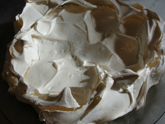 7. Place into the 250F oven and bake for 60-70 minutes…until meringue hardens and turns a pale cream colour.