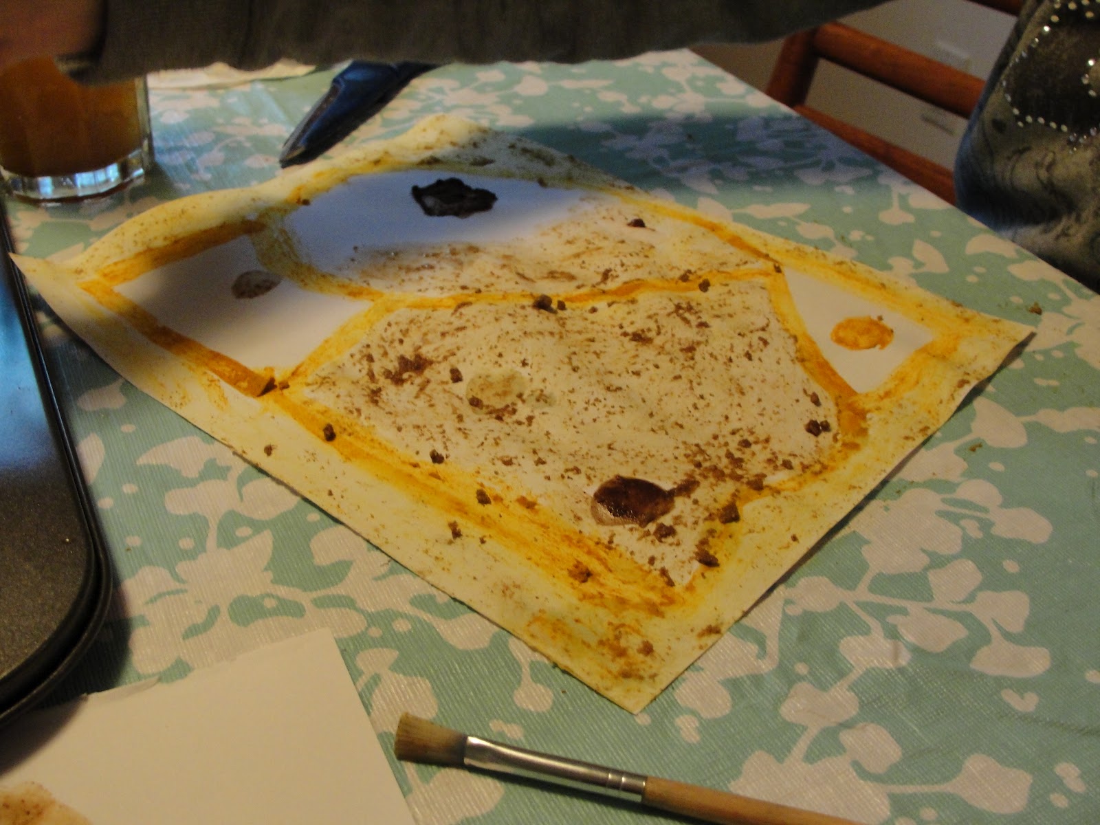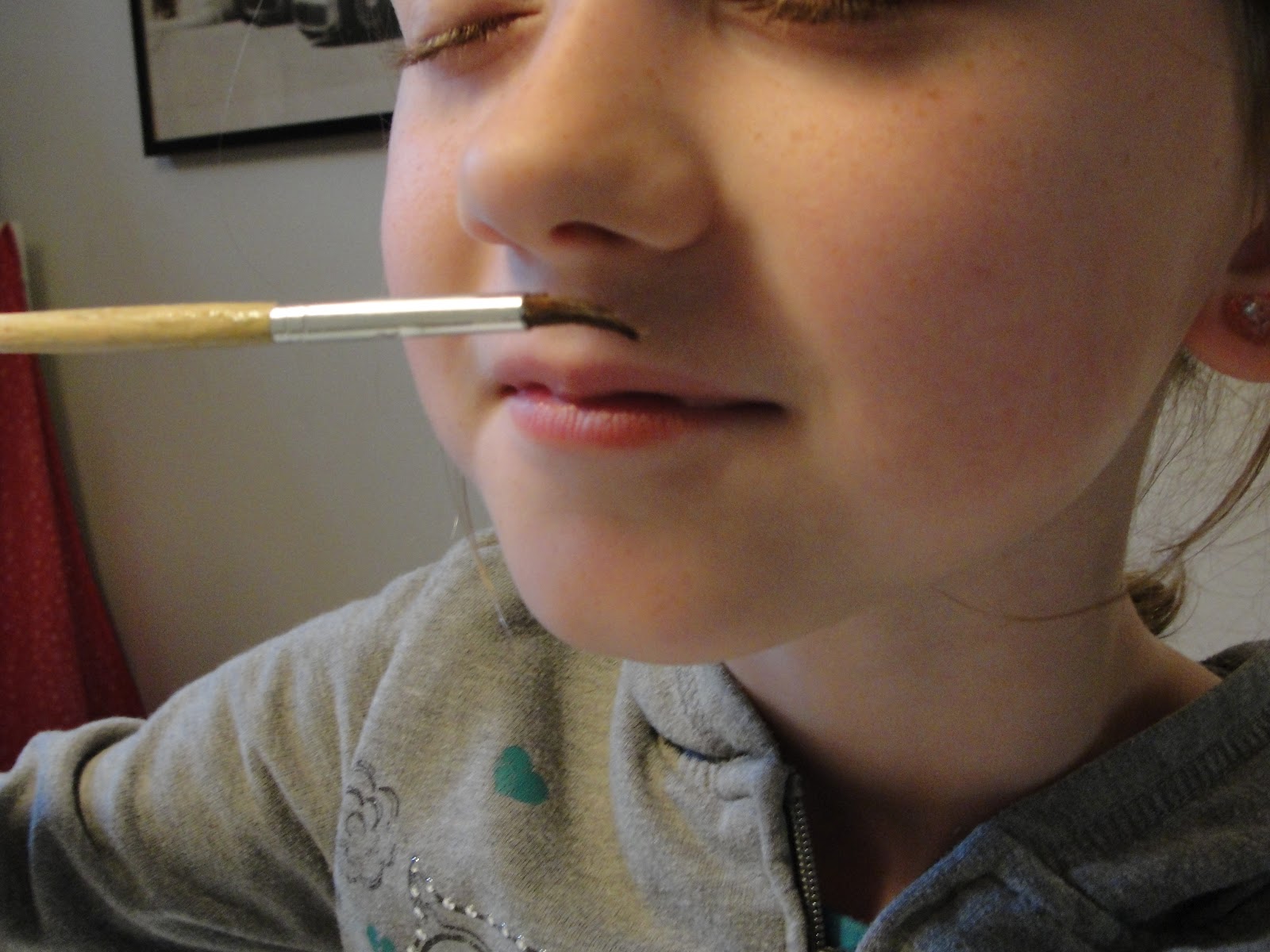 My girls began painting. They were inspired to create designs reminiscent of the Indian pieces we had seen online. As she painted my eldest daughter said, “My paintbrush smells delicious!” She loved this activity and ended up making many, many pictures..smelling everything as she went.