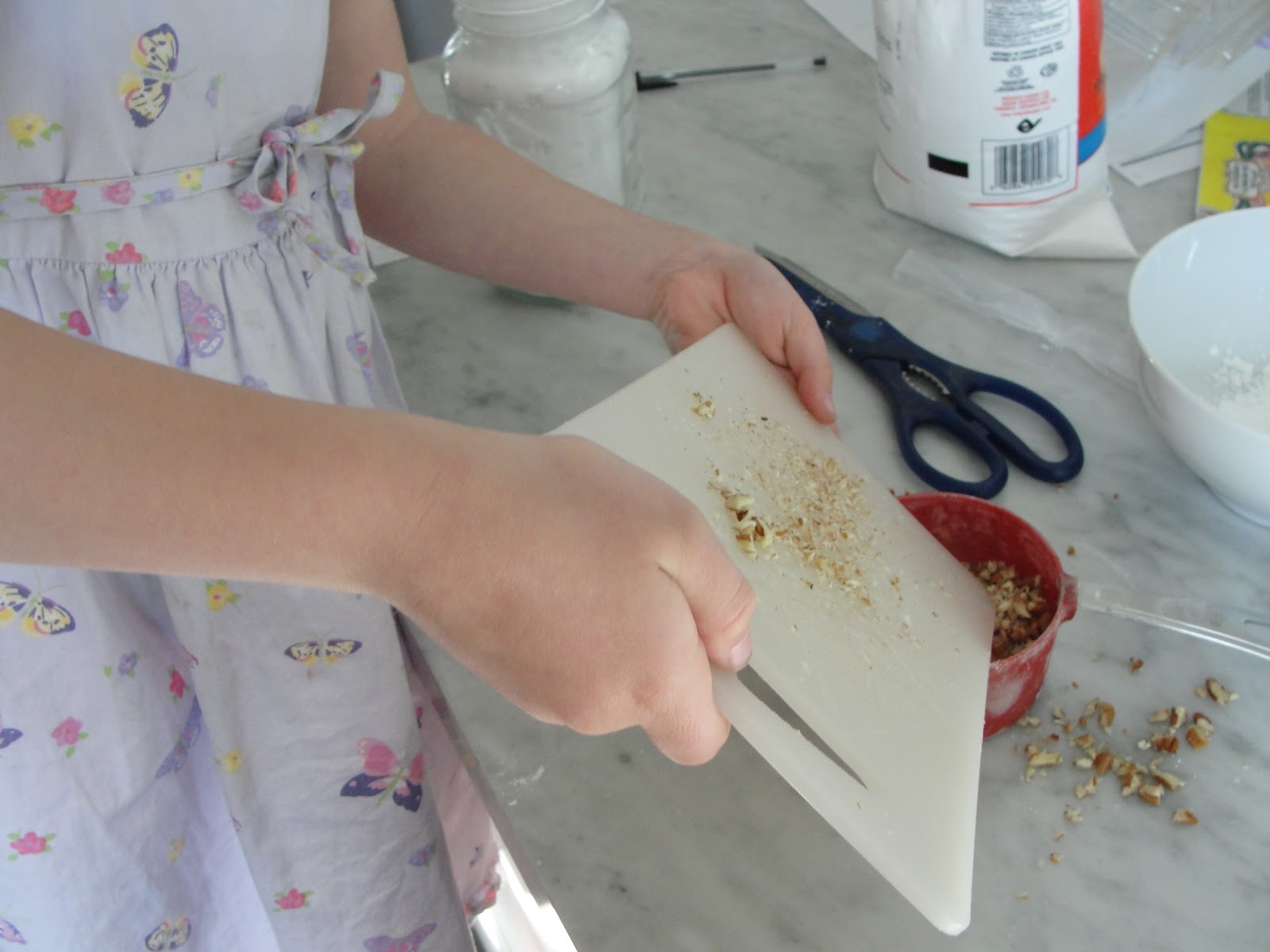 Add 1 cup finely chopped walnuts (we used pecans)