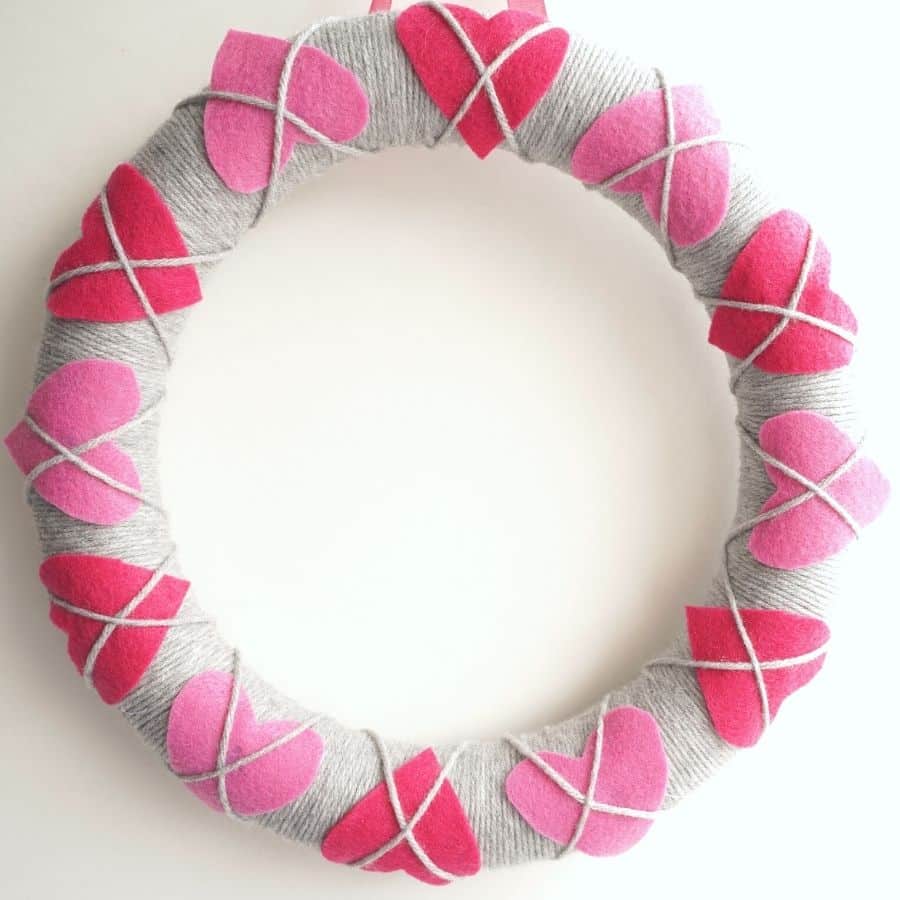 This wreath is perfect for Valentine's Day, but I also think it would make a lovely addition to a baby's nursery. What a beautiful gift to make for a new little one. In fact, I could totally see making this argyle wreath using different colours of felt. Imagine green and blue hearts or yellow and orange. So many possibilities.