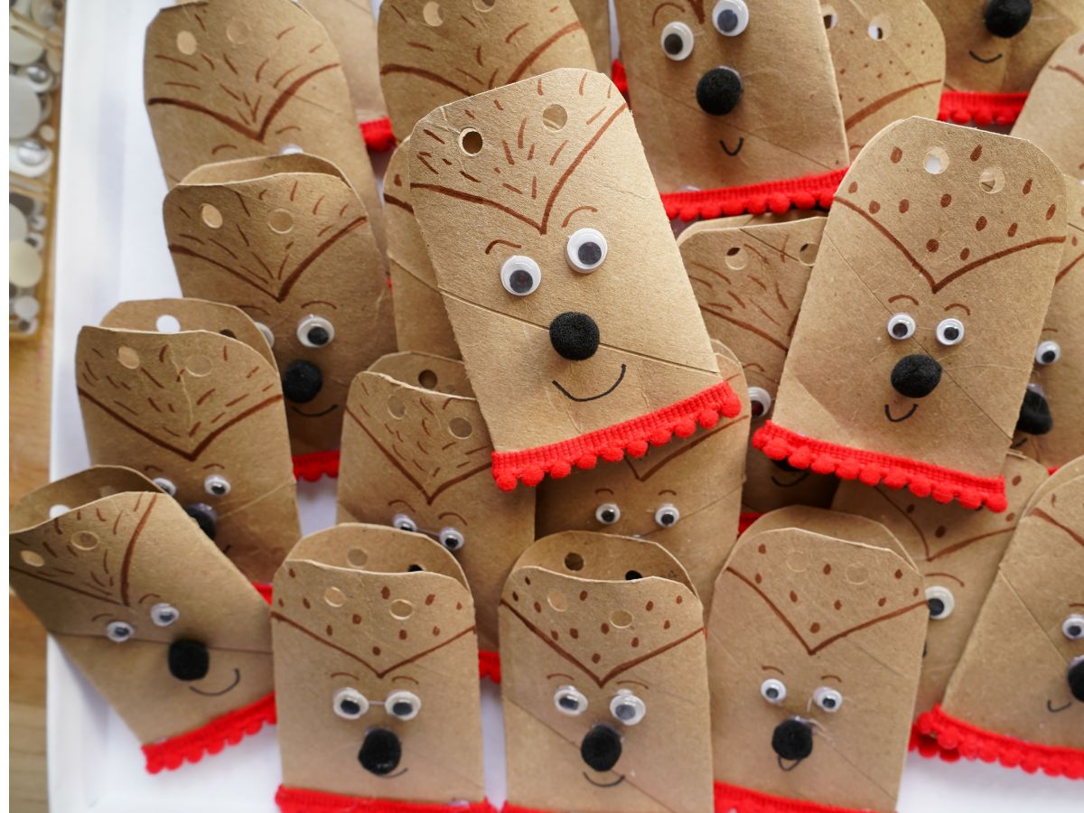 I mean, how cute are these reindeer? Each reindeer is a little box that is holding a Christmas treat for each day of December, counting down to Christmas. Yes, you will need to save up those toilet paper rolls, or do what I did and slide them out from inside the rolls. Okay, get ready because this refillable DIY advent calendar is going to be an absolute favorite.