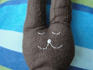 5. Using needle and thread hand stitch a face onto the bunny. You may also like to sew any other details, like ears.