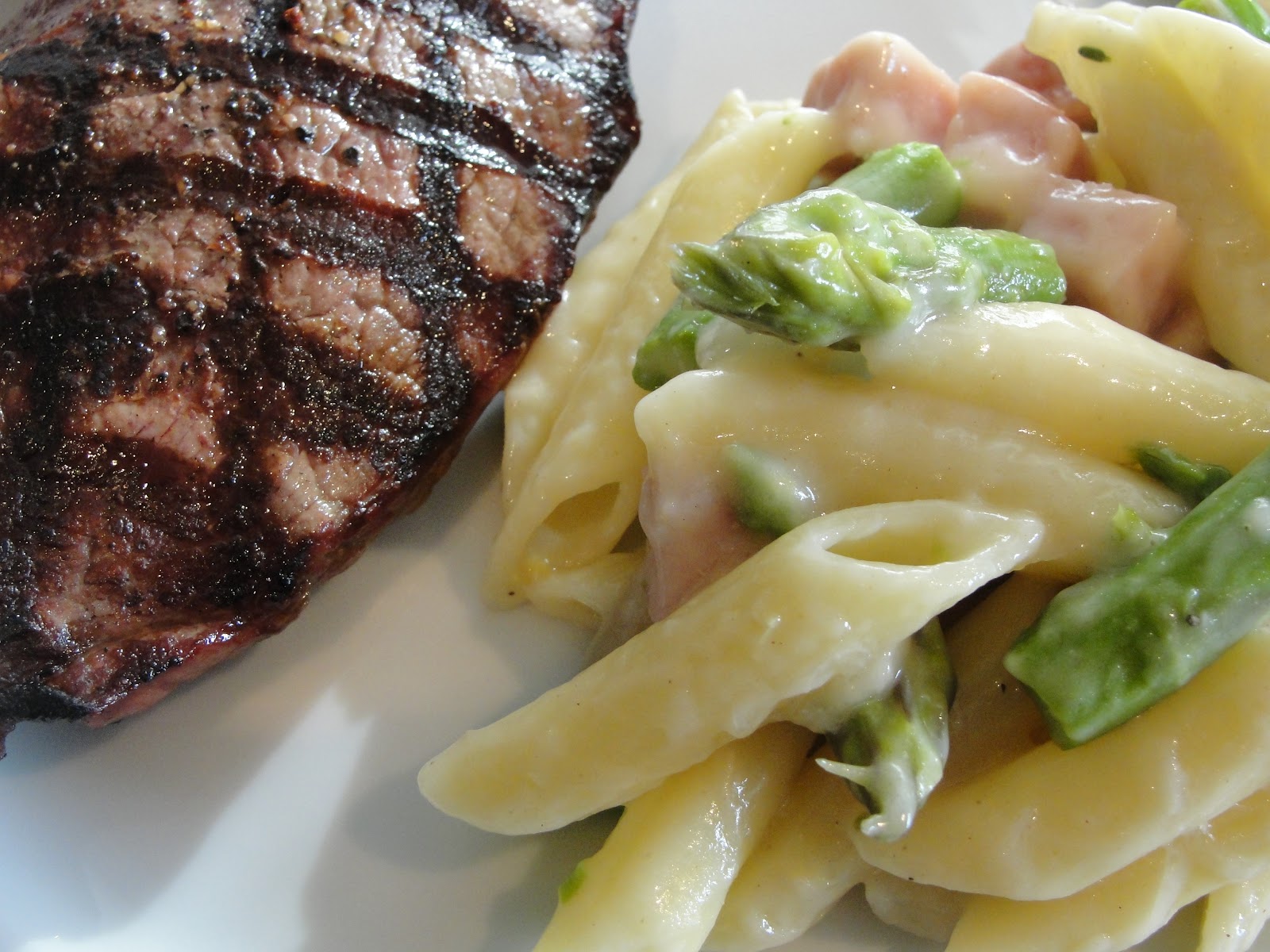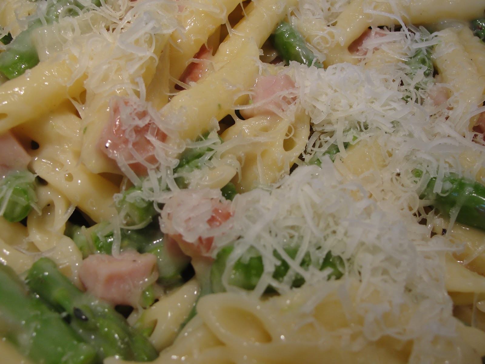2. Add the asparagus to the boiling pasta water and cook with the pasta for 4 to 6 minutes.