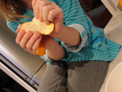 There are a few more suggestions in the book. When we were done reading through the list, I asked my daughter to pick which of the suggestions we could do in our garden. She picked the fruit garland. This was a great learning opportunity for my daughter.