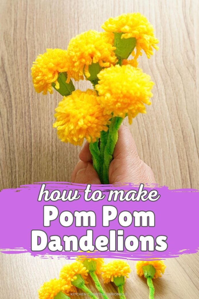 I love spring flowers, and I love making pom pom crafts. And, while most people consider dandelions a weed, I think they are lovely, bright, and definitely a spring flower. So, I wanted to figure out how to make pom pom dandelion flowers. These were a delight to make!