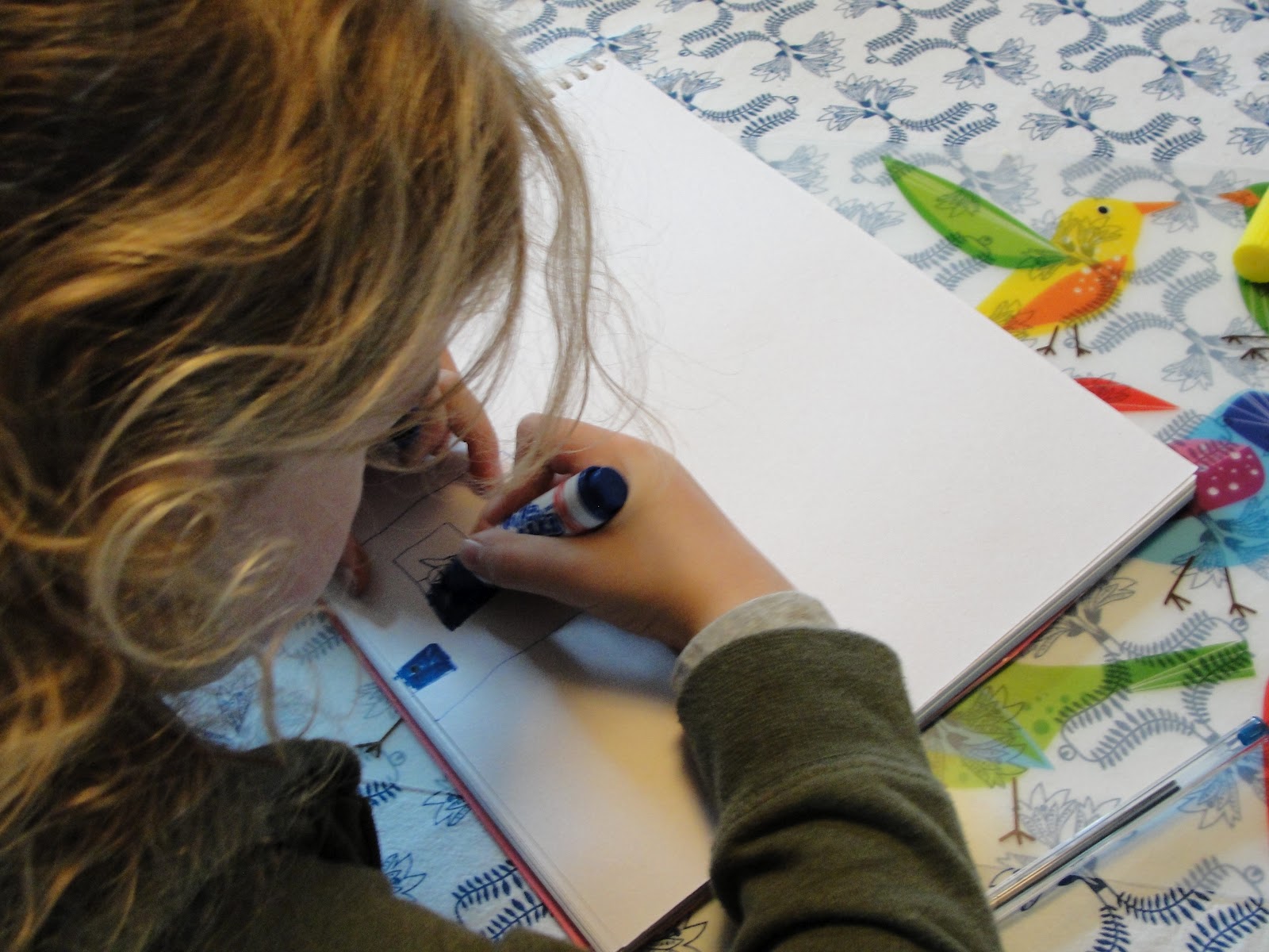We decided to try removing the artist’s images from the text. I asked my daughter to lay down on the floor of our living room, with her eyes closed. She got comfortable on a blanket.