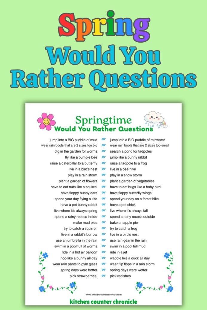 Here's an example of some of the questions you'll find in the free printable spring would you rather game...