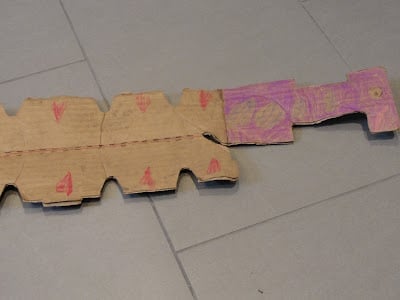 Speaking of handmade treasures, last week my youngest daughter left the schoolyard with a soggy piece of cardboard in her hands. When I said that she had to put the cardboard in the recycling bin when we got home, my daughter said "But, it's my caterpillar. I want to make a caterpillar." I try not to stifle their creativity, so I replied that she had to put it in the basement to dry over night and in the morning I wanted to see this piece of dirty old cardboard transform into a caterpillar.